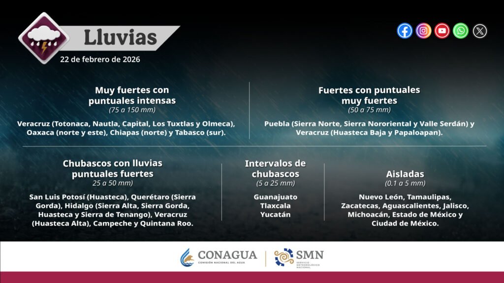 Pronóstico de lluvias para hoy 23 de febrero de 2026: