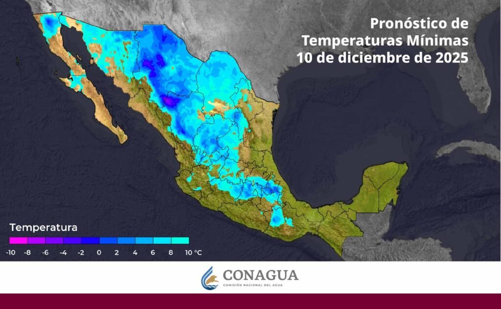 Pronóstico de temperaturas mínimas para hoy 10 de diciembre de 2025: