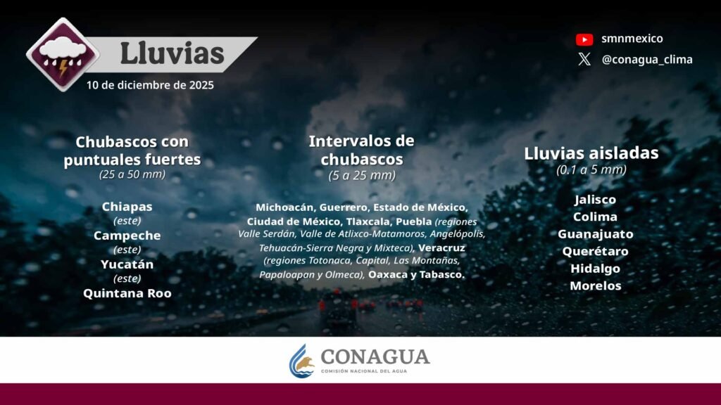 Pronóstico de lluvias para hoy 10 de diciembre de 2025: