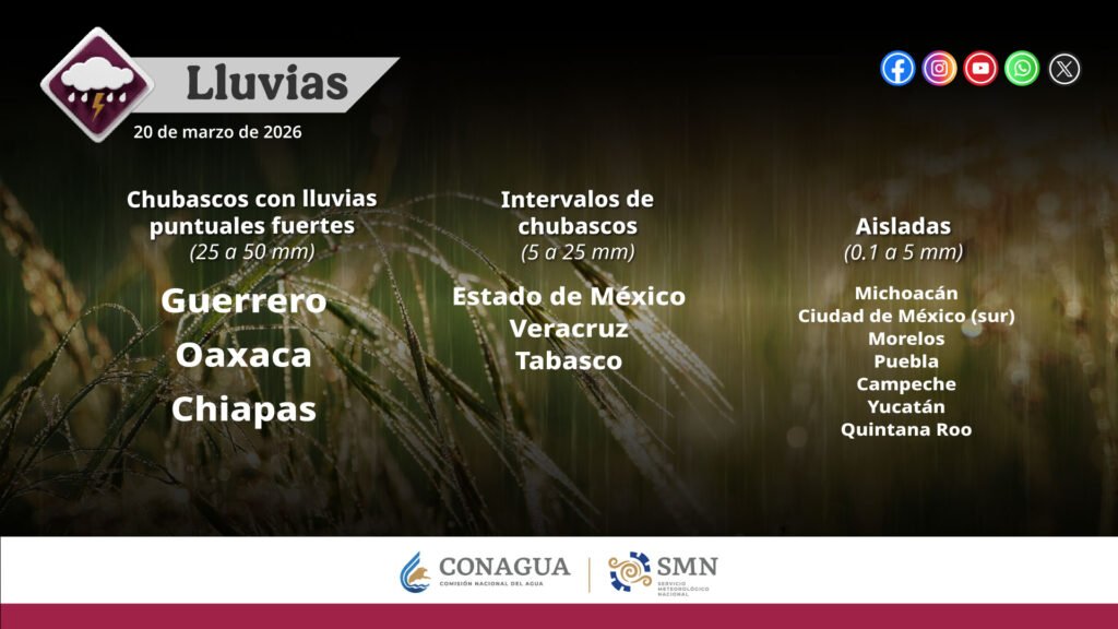 Pronóstico de lluvias para hoy 20 de marzo de 2026: