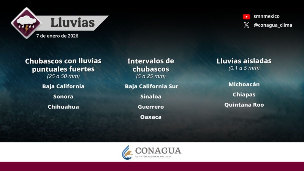 Pronóstico de lluvias para hoy 07 de enero de 2026: