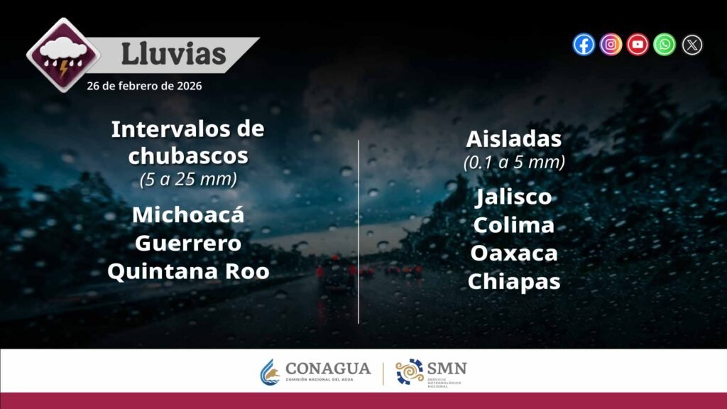 Pronóstico de lluvias para hoy 26 de febrero de 2026: