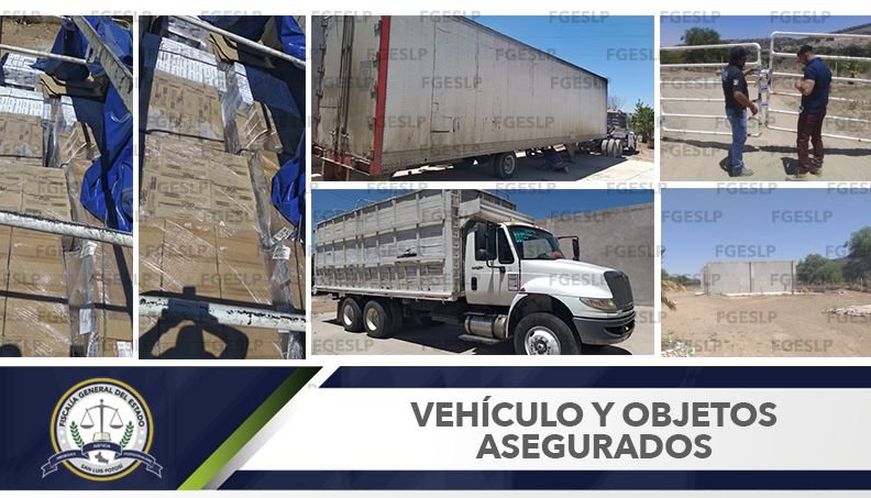 SLP. – Con base a una orden de cateo, agentes de la Policía Investigadora de la Fiscalía General del Estado de San Luis Potosí (FGESLP), ingresaron a un inmueble ubicado en la delegación de Villa de Pozos, perteneciente a la ciudad capital, donde se recuperó un vehículo de motor marca internacional color blanco, tipo tritón de redilas con carga y un semi remolque tipo caja seca en color blanco, ambos con reporte de robo.