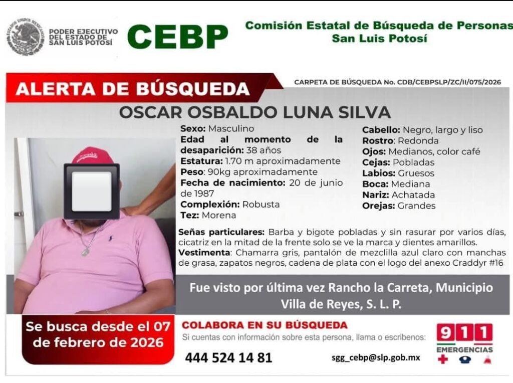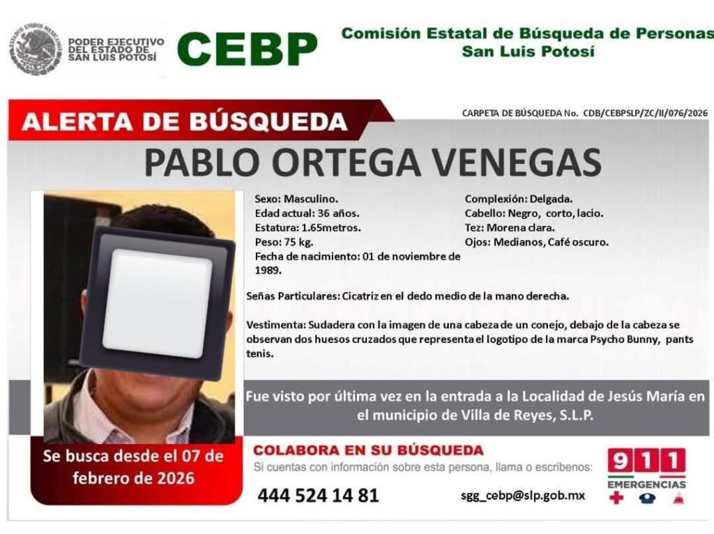 Desde el sábado 7 de febrero de 2026, la Fiscalía Potosina inició los protocolos de búsqueda correspondientes, iniciándose las fichas respectivas tras tener conocimiento de la no localización de ambas personas.