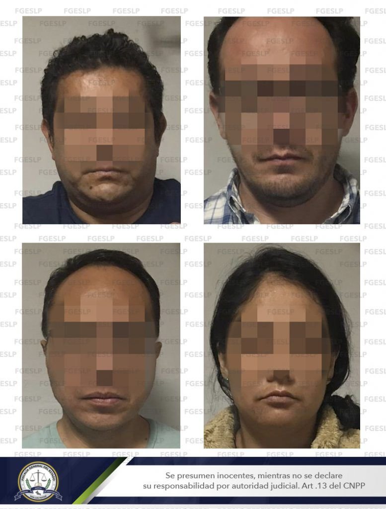 SLP. – La Fiscalía General del Estado de San Luis Potosí (FGESLP) a través de agentes de la Policía de Investigación (PDI) cumplimentó una orden de aprehensión en contra de tres hombres y una mujer por su probable responsabilidad en el delito de robo calificado, hecho cometido en un banco ubicado en avenida Carranza de la ciudad Capital.