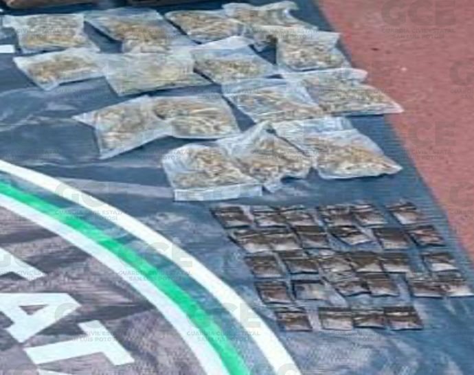 .- Derivado de los operativos de inteligencia y seguridad, y del combate frontal contra la criminalidad que se mantiene en la zona Huasteca, agentes de la Guardia Civil Estatal (GEC) asestaron un nuevo golpe a la delincuencia al desarticular una célula delictiva a quienes se les decomisó droga, armas de grueso calibre, cartuchos y equipo táctico.