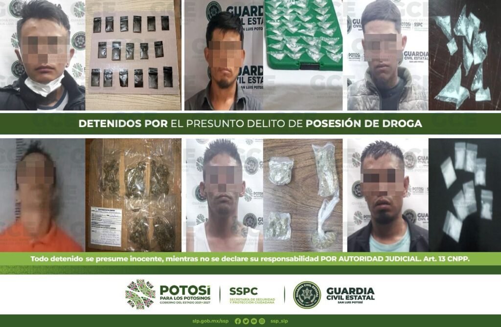Como resultado de los diferentes operativos preventivos implementados en el Estado, que tienen como objetivo combatir los delitos y con ello garantizar una mayor seguridad, Policías de la Guardia Civil Estatal (GCE) detuvieron a seis masculinos por presunta posesión de droga y aseguraron más de 80 dosis de enervantes.