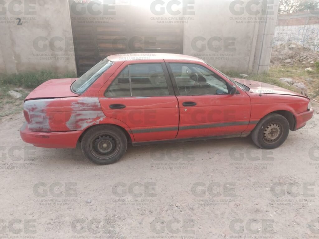 Continuando con los operativos desplegados en la calle Monreal y la calle Tercera Norte, en la colonia Tierra Blanca, los uniformados ubicaron un Nissan, tipo Tsuru, color rojo, modelo 1993, mismo que contaba con reporte de robo el 01 de julio de 2022, en la colonia Balcones del Valle Segunda Sección.