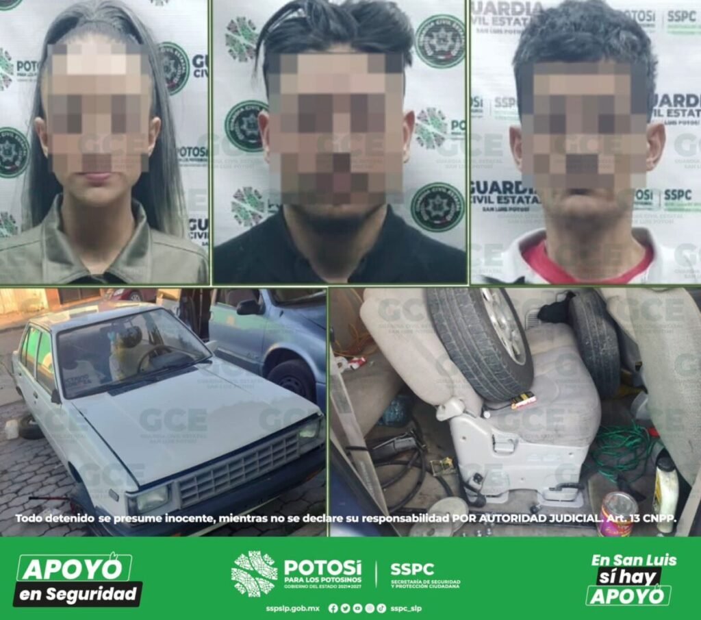 Las autoridades sorprendieron a dos hombres y una mujer, mientras desvalijaban un vehículo Nissan, línea Tsuru, color blanco, mismo que, tras ser consultado, resultó con reporte de robo del 06 de diciembre de 2023, en la colonia Himno Nacional Primera Sección. Por tales hechos, Karla Verónica “N” de 20 años de edad; Oscar “N” de 39 años, quien cuenta con antecedentes delictivos por robo; así como Mario “N” de 33 años, con antecedentes por delitos contra la salud, crimen organizado y portación de arma de fuego, fueron detenidos.