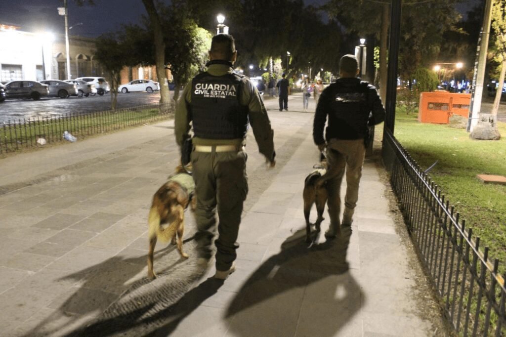 Además, el Agrupamiento K9 de la GCE se desplegará pie tierra brindando seguridad y vigilancia, realizando labores de proximidad social en lugares en donde se concentra mayor número de personas, así como en los comercios aledaños a fin de inhibir actos constitutivos del delito.