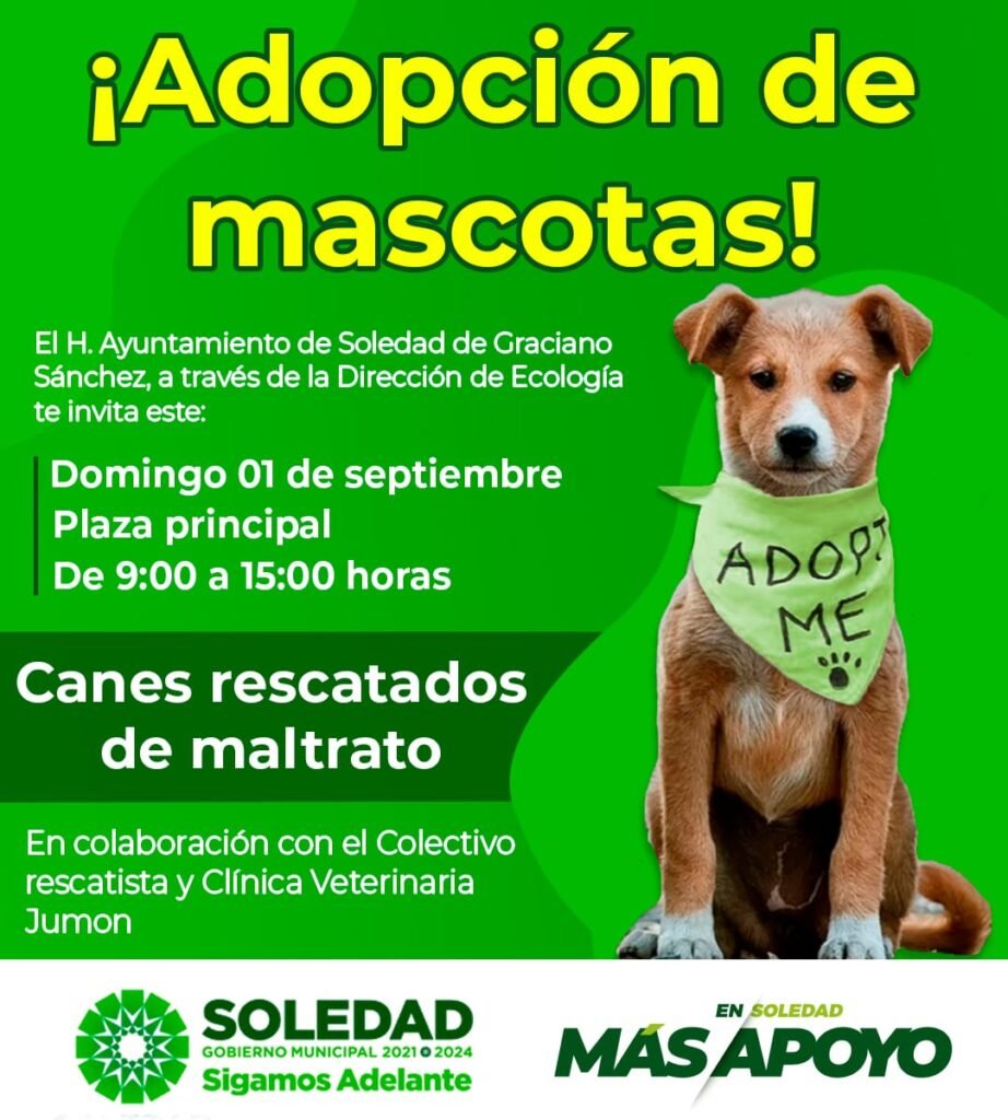 Ayuntamiento de Soledad invita a jornada de adopción de mascotas, este domingoAyuntamiento, Portada / Por El Portal SLP / 30/08/2024 Ayuntamiento de Soledad invita a jornada de adopción de mascotas, este domingo Leer más