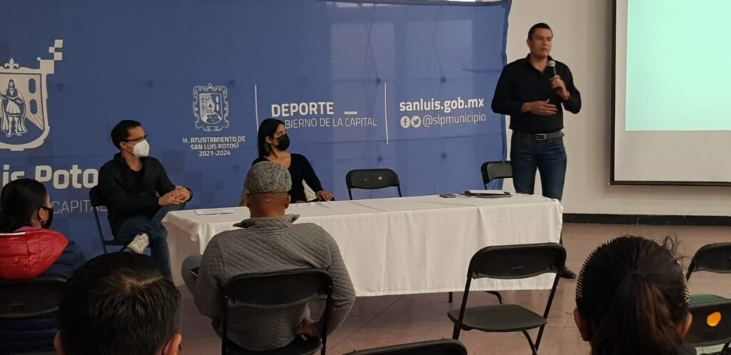 San Luis Potosí.- El auditorio “Socorro Blanc” de la Unidad Administrativa Municipal, fue sede este viernes al mediodía, de una reunión entre representantes de asociaciones deportivas y entrenadores, con el equipo de la Dirección de Deporte Municipal, responsable de la delegación de la Capital del Estado, que participará en la fase estatal de los Juegos Nacionales Conade 2022.