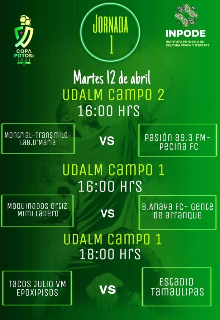 La actividad de la Copa Potosí de fútbol arranca en punto de las 14:00 horas con el encuentro varonil entre Galtor Bienes Raíces vs Atlético Nacional, en la cancha del apoteósico Centro Deportivo de Alto Rendimiento (CDTAR) “Plan de San Luis”. En la rama femenil, inician actividad las escuadras Selección CUFF vs América San Luis, en la cancha 3 de la Unidad Deportiva “Adolfo López Mateos” a las 18:00 horas.