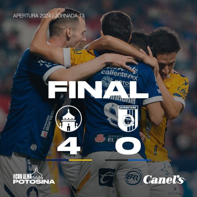 El conjunto del Atlético de San Luis le pasó por encima a los Gallos Blancos de Querétaro, en partido adelantado de la Jornada 13, por marcador de 4-0 dentro del torneo Apertura 2024 de la Liga MX, a una semana de reanudarse el campeonato.