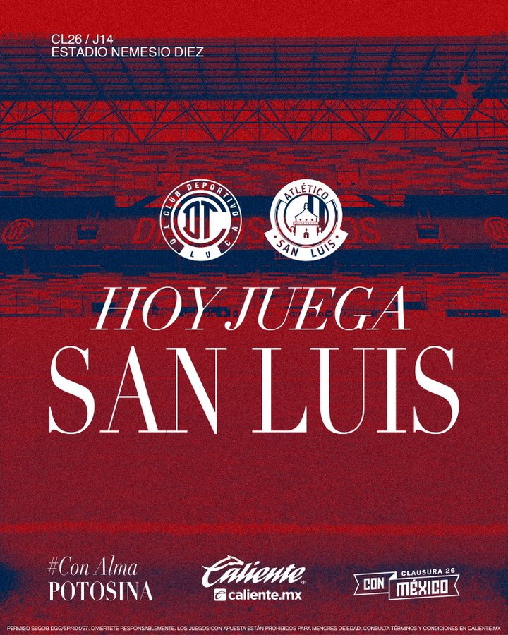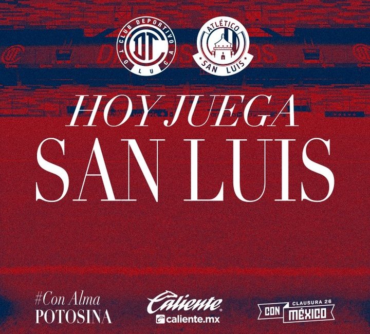 Toluca llega con altibajos en liga tras caer ante Querétaro, pero con gran impulso luego de golear 4-2 al LA Galaxy en Concachampions. Por su parte, San Luis vive una realidad distinta: es 14° con 14 puntos, aunque llega motivado tras vencer a Rayados, resultado que mantiene vivas sus esperanzas.